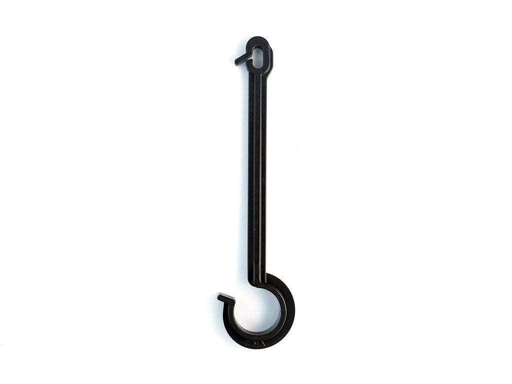 Plastový držiak na uchytenie zavlažovacích hadíc s priemerom 20 mm na napínací drôt (do priemeru 4,00 mm) - hadica visí v odstupe 105 mm od drôtu. Spodná časť, kde je uchytená hadica, má nový tvar, do ktorého možno zavlažovacie hadicu rýchlejšie upevniť.