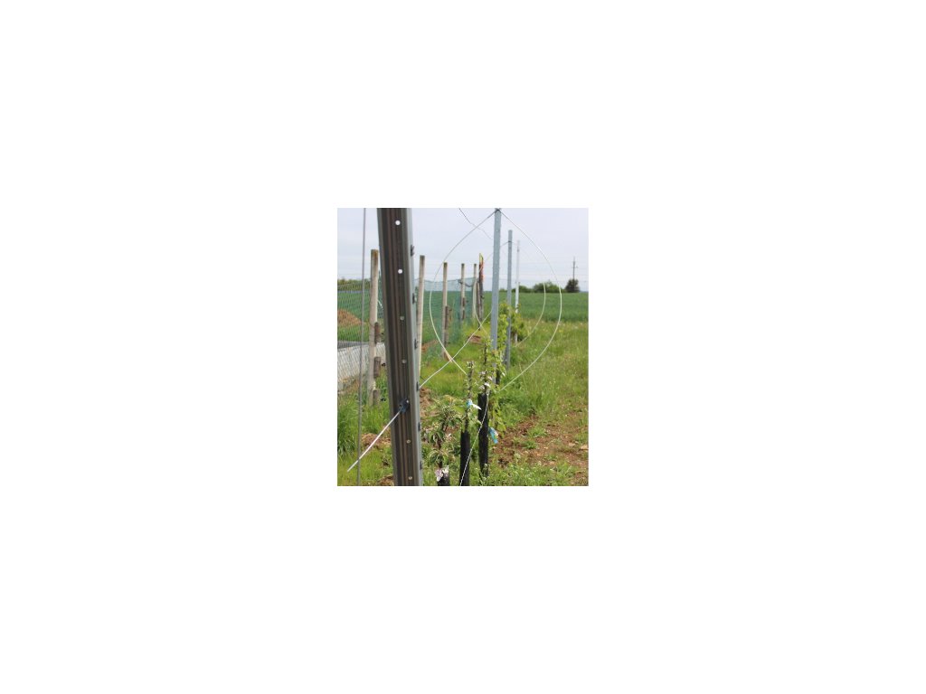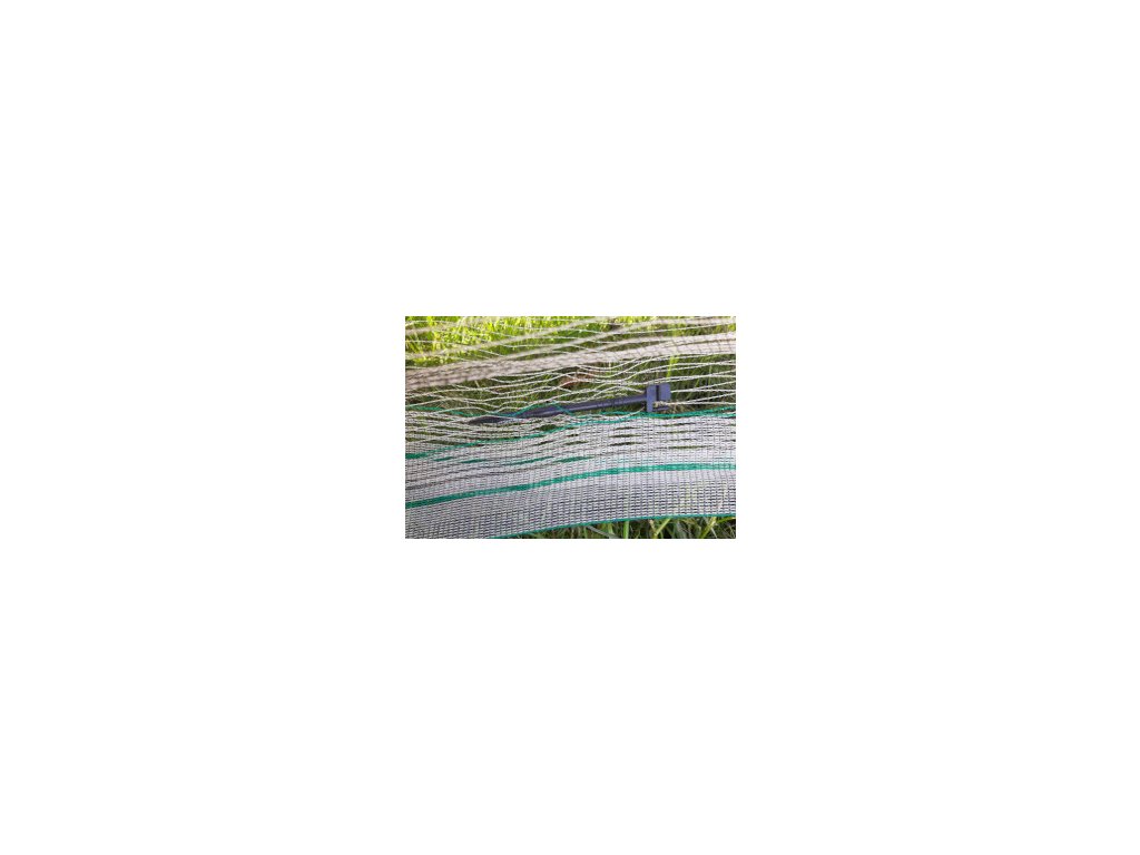 - sieť natiahnite až na zem z každej strany rady. Na horný drôt vedený v každej rade upevnite sieť pomocou spony ROLLE2 cca každý meter. Na kraji radu necháme sieť presahovať asi meter- spoja sa pomocou ihly