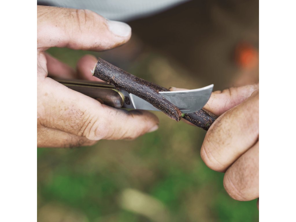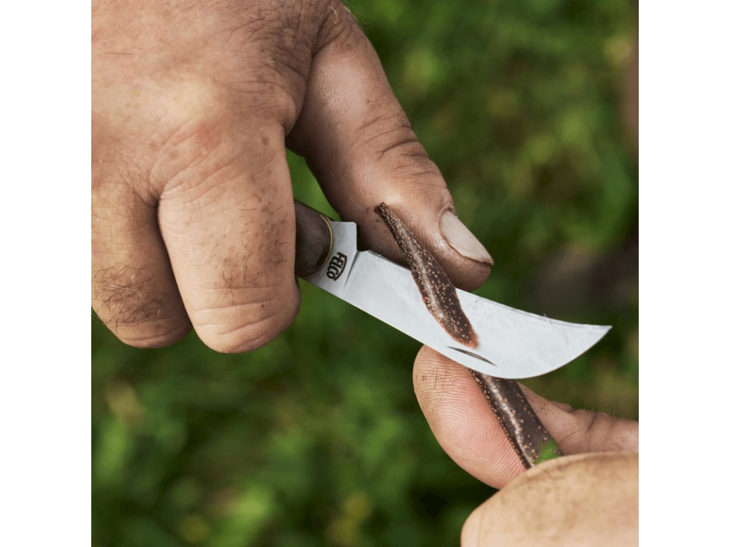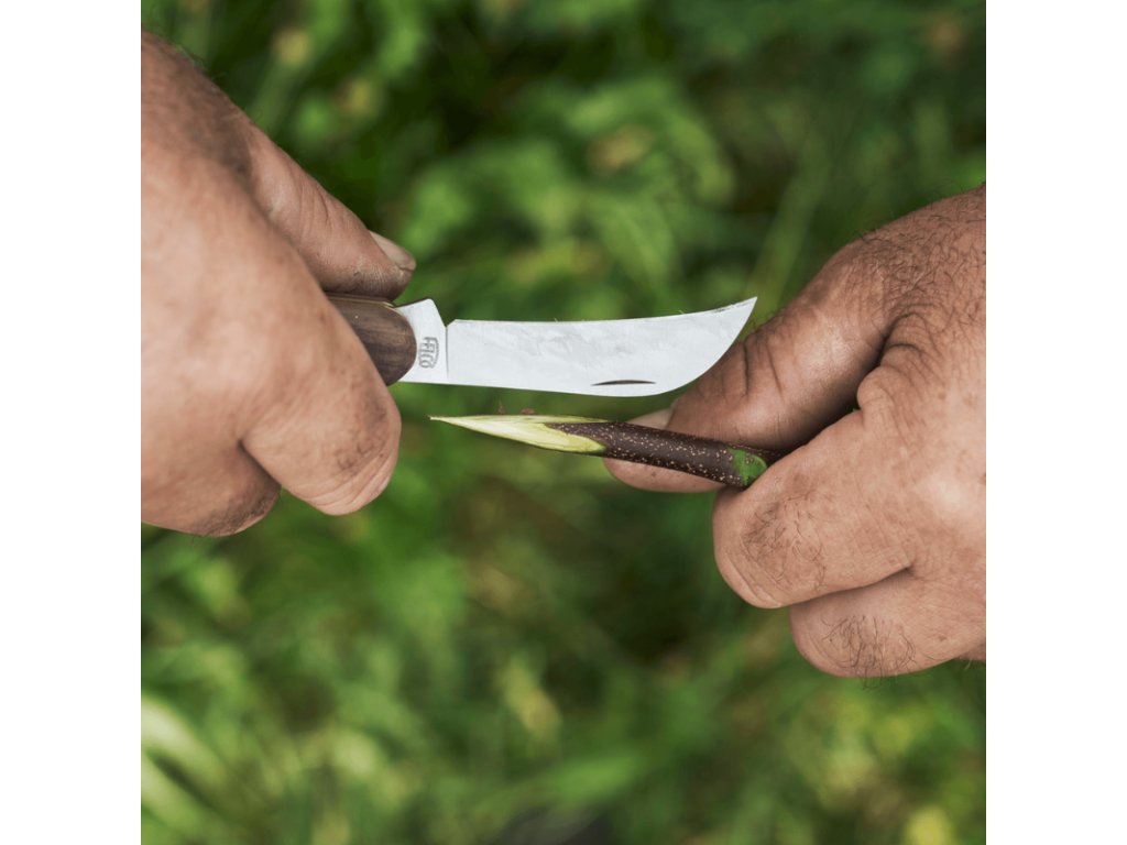 Rukoväť z orechového dreva pre pohodlný uchop. Vnútorné mosadzné obloženie eliminuje trenie a chráni čepeľ pred poškodením.