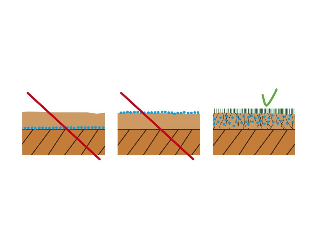 Prínosy tohto produktu sú ďalej podporené začlenením špecifických trávnych hnojív a huminiových kyselín, ktoré majú pozitívny vplyv na schopnosť zadržiavať vodu, štruktúru pôdy a jej mikrobiologickú aktivitu. Toto všetko podporí rast koreňov čím sa zlepší celková kvalita trávnika a realizovaná plocha môže skôr zatrávnená - funkčná.