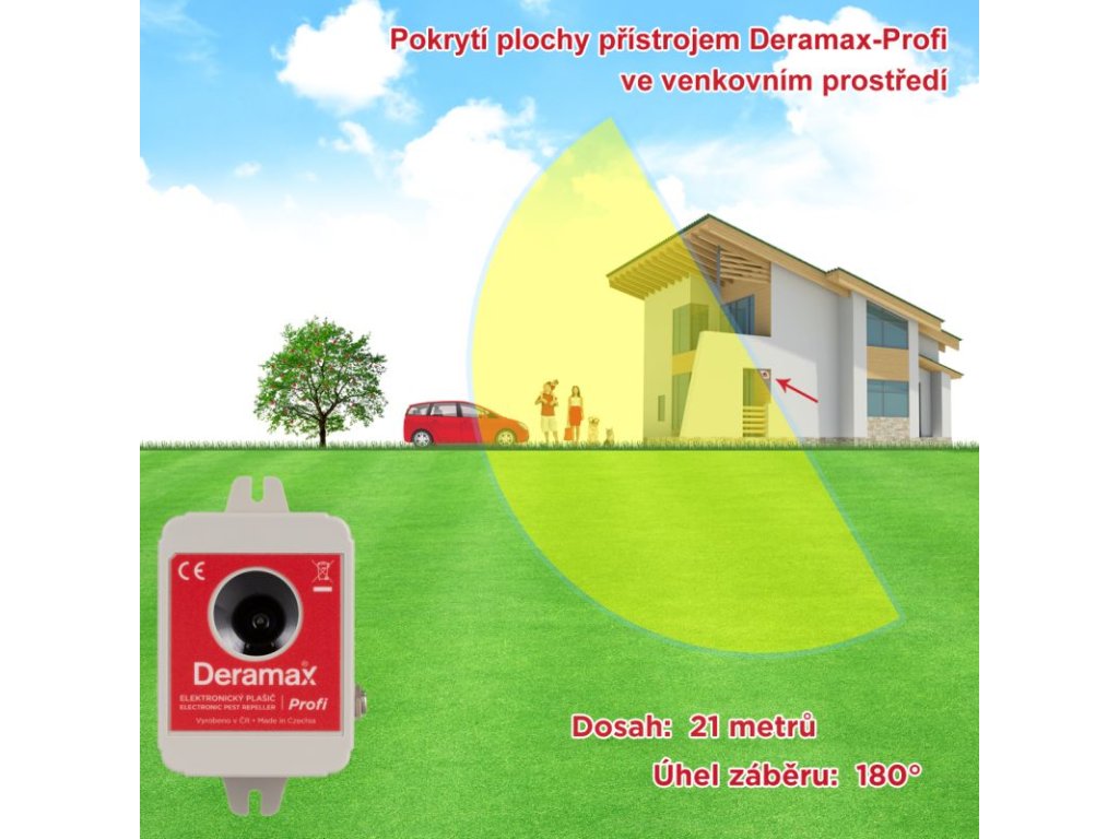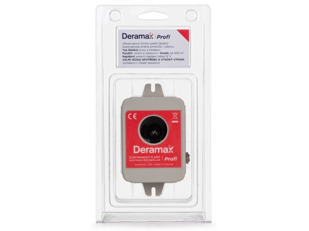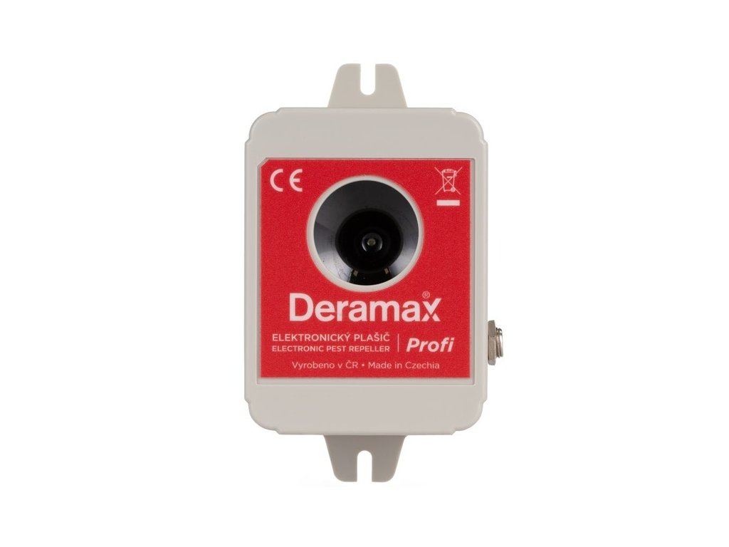 Ultrazvukový plašič (odpudzovač) Deramax-Profi je elektronické zariadenie, ktoré slúži na ochranu vnútorných alebo vonkajších priestorov pred kunami, hlodavcami a rejska. Generuje špecifické ultrazvukové signály, ktoré sú pre škodcov veľmi nepríjemné, takže po krátkom čase chránený priestor opúšťa a hľadajú si nové útočisko mimo priestoru chránený plašič. Nedochádza teda k úhynu škodcov a nevzniká nutnosť odstraňovať uhynuté zvieratá. Generované ultrazvukové signály majú automatickú zmenu kmitočtu v danom rozsahu, aby si škodcami na signál nezvykli a súčasne aj automatickú zmenu výkonu (náhla zmena výkonu), ktorá prispieva k vyššej účinnosti tohto typu plašiča. Prevádzka prístroja je úplne ekologický, bez využitia chemických prostriedkov.