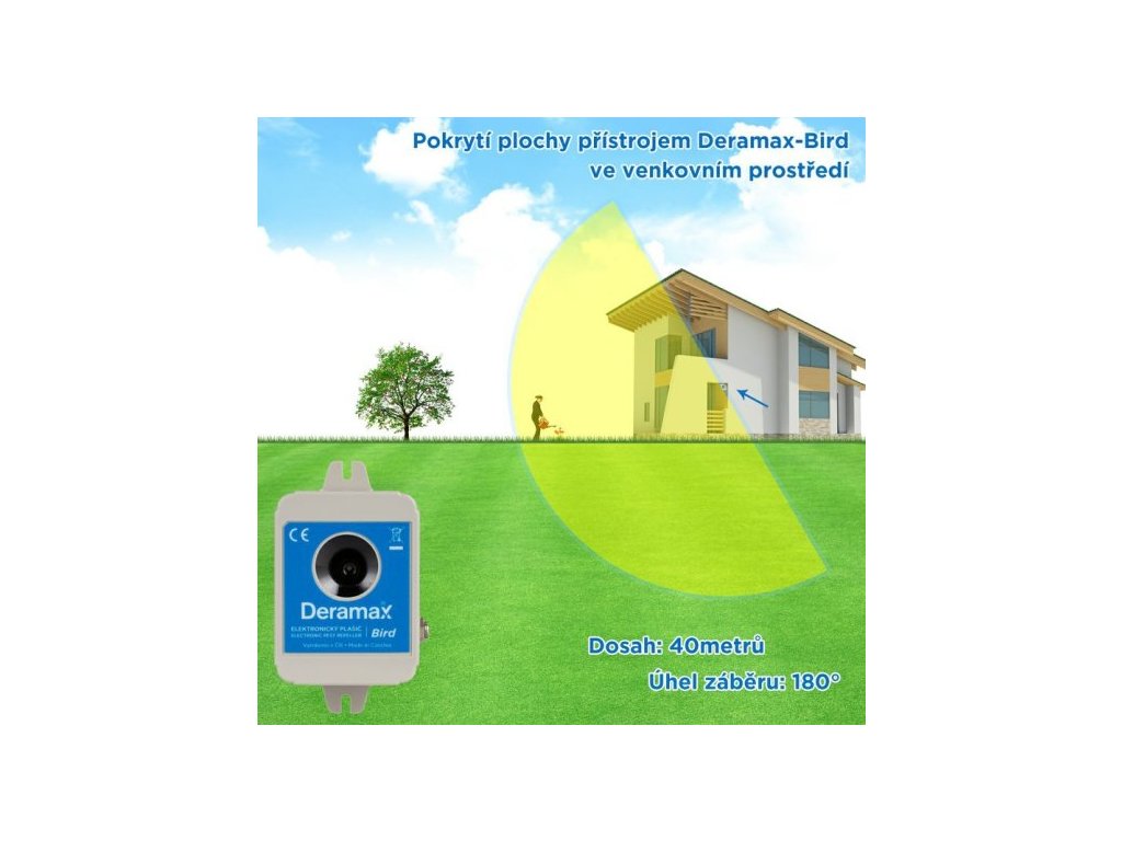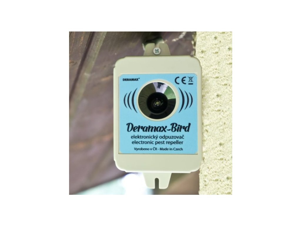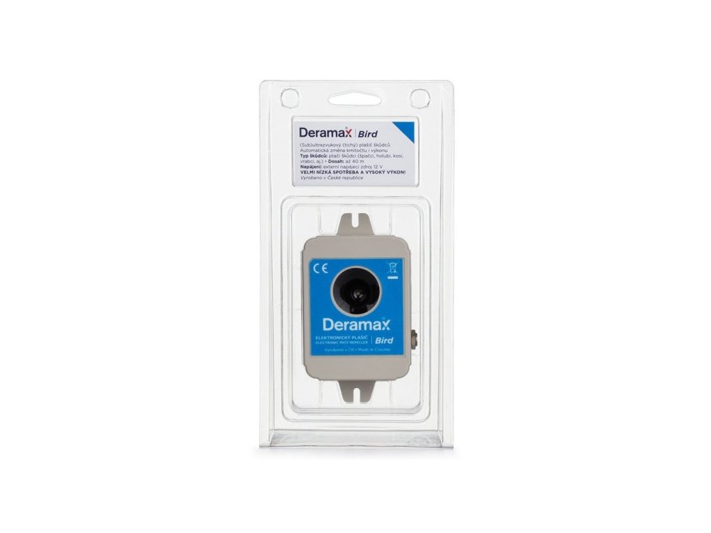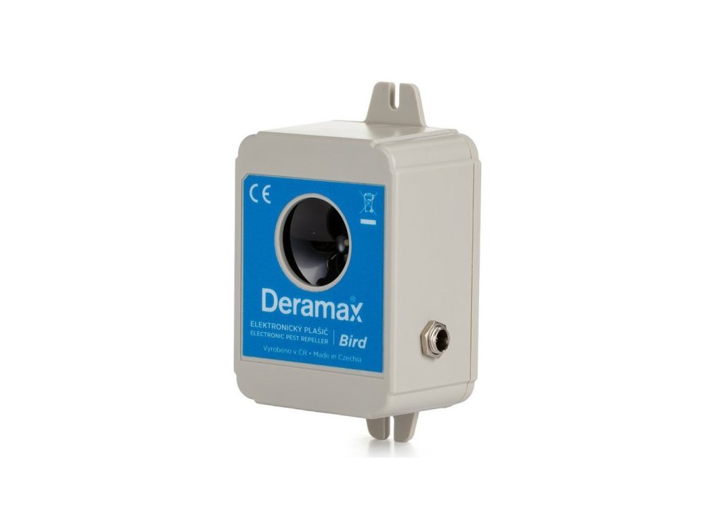 Deramax-Bird je určený na využitie ako plašič (odpudzovač) vtákov. Generuje špecifické ultrazvukové signály, ktoré sú pre vtáky veľmi nepríjemné, takže po krátkom čase chránený priestor opúšťa a hľadajú si nové útočisko mimo priestoru chránený plašič. Generované ultrazvukové signály majú automatickú zmenu kmitočetov v danom rozsahu, aby si vtáky na signál nezvykli a súčasne aj automatickú zmenu výkonu (náhla zmena výkonu), ktorá prispieva k vyššej účinnosti tohto typu plašiča. Čo sa potom týka konkrétnych druhov vtákov, v našich podmienkach sa jedná predovšetkým o využitie ako plašič holubov, škorcov, vrabcov, drozdov, havranov, vrán a pod. Prevádzka prístroja je úplne ekologický, bez využitia chemických prostriedkov.